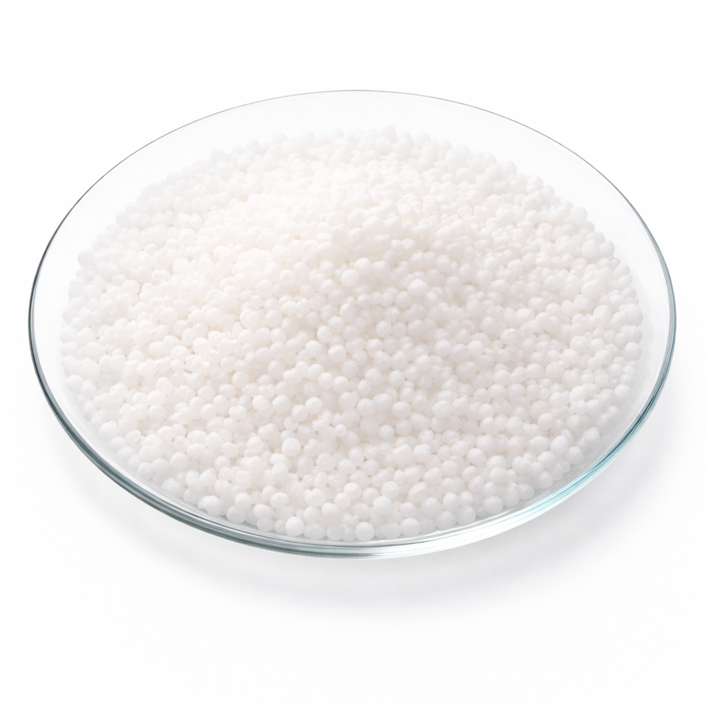 Aparência: Grânulos brancos cerosos.